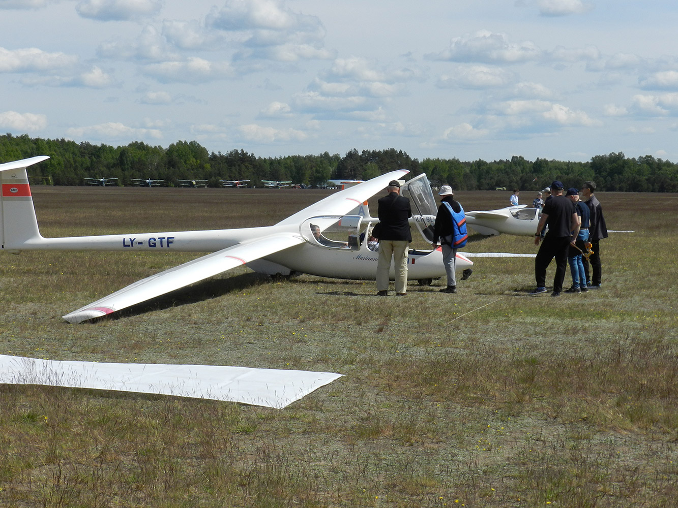 Mes esame Pociūnu aerodrome. Čia vyko Lietuvos aviacijos veteranų A.Jonušo taurės sklandymo sporto varžybos.