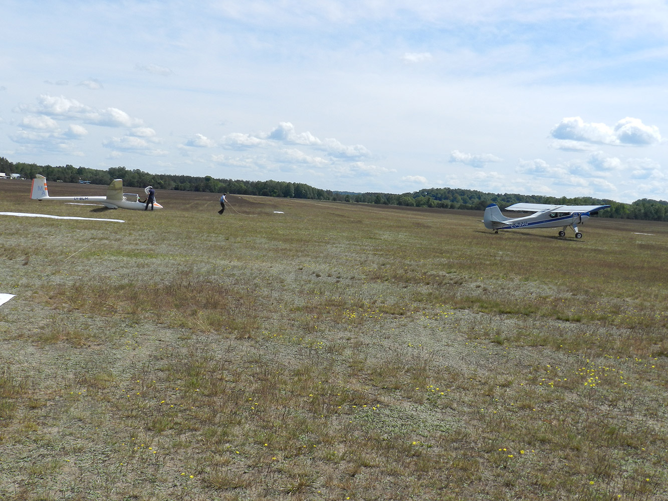 Mes esame Pociūnu aerodrome. Čia vyko Lietuvos aviacijos veteranų A.Jonušo taurės sklandymo sporto varžybos.